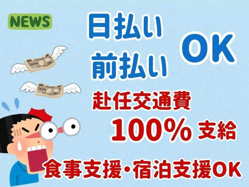 「食事、宿泊支援OK/工場スタッフ」携帯なし・所持金なしでもOK「社宅&寮付き求人」【契約社員】